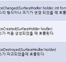 Android SurfaceView 썸네일형 리스트형 서피스뷰(SuraceView) 서피스뷰는 동영상이나 게임처럼 화면 갱신이 빠르게 일어나야 하는 경우에 사용할 수 있는 뷰이다. 이를 위해 서피스뷰는 다른 뷰와는 다르게 더블 버퍼링을 제공한다. 더블 버퍼링은 두개의 버퍼를 사용하여 화면을 빠른 속도로 갱신 할 수 있는 기법을 말하며, 이를 위해 내부적으로는 새로 화면에 표시해야 할 영역을 메모리 영역에 미리 그린 후에 필요한 시점에 이를 화면에 뿌려준다. 싱글 버퍼링에서는 화면에 새로운 이미지를 그릴 때, 기존 이미지를 지우고 위에 다시 그리는 작업이 매번 일어나기 때문에 복잡하거나 많은 내용을 그릴 때는 화면 갱신이 느려서 깜박임 현상이 발생한다. 이에 반해 더블 버퍼링은 백그라운드에서 미리 이미지를 모두 그리고 화면에 출력하기 때문에 깜박임 현상을 개선 할 수 있다. 더블 버퍼링을.. 더보기 이전 1 다음